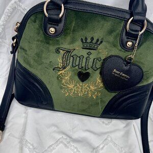 Juicy Couture Super Green Chocolate Heritage Bowler Velvet Satchel
