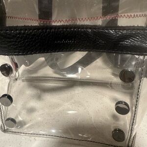 Stylish clear backpack with black accents. Perfect for everyday use.