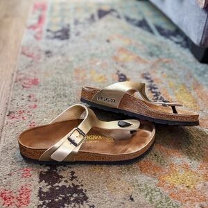 The most comfortable sandals I have ever owned! They were a gift originally and I only wore one time because they were a size too big so I had to go back and get a size 37. They’re a beautiful soft gold color and look soooo good with a tan in the summer time.