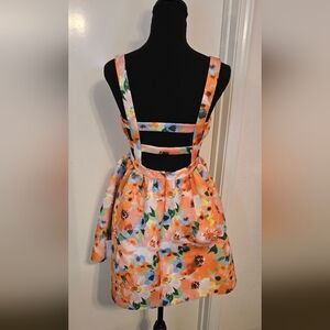 Asos Design floral printed broderie open back skater mini Sundress in pink