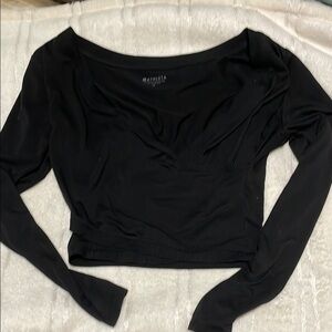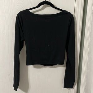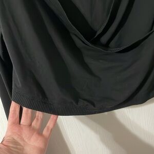 Athleta Crop V-Neck Faux Wrap Black Long Sleeve Women's Top Size Medium