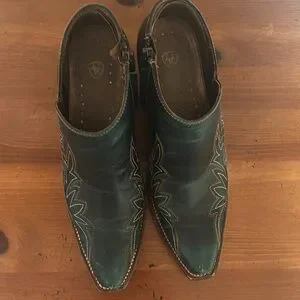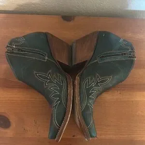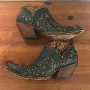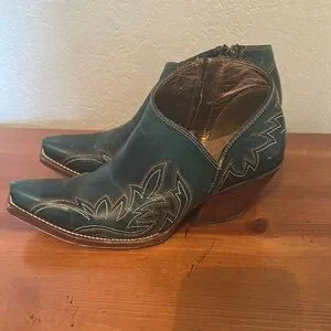Step out in style with these chic teal Western ankle boots. Perfect for adding a pop of color to any outfit.