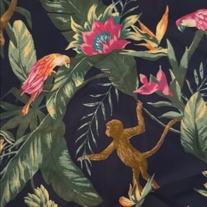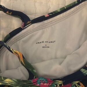 Stylish one-shoulder swimsuit with a vibrant floral pattern. Features a mix of pink, green, and yellow colors on a dark background.