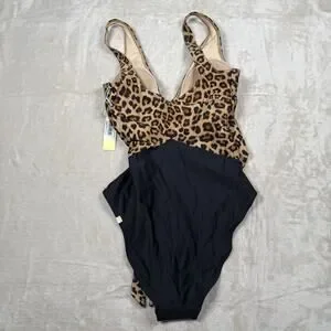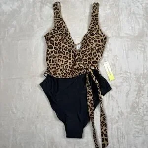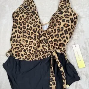 NWT Summersalt The Perfect Wrap One Piece Swimsuit Leopard Black Size 4