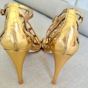 Tory Burch Gold Strappy High Heel Sandals - Size 11