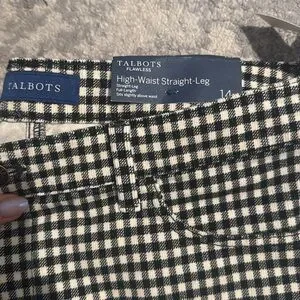 Upgrade your wardrobe with these stylish black and white checkered jeans from Talbots. Perfect for any casual outing, these jeans offer both comfort and a modern look.