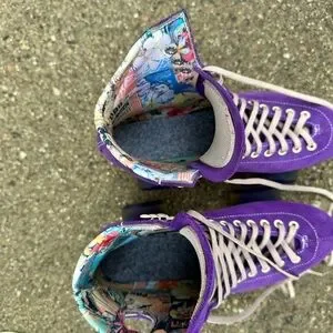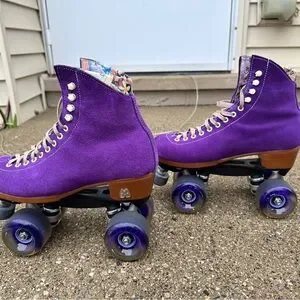 Stylish purple suede roller skates with colorful accents. Perfect for a fun ride. Gently used ~6 months, plenty of life left! Cushions are sure grip, 85a (purple). Men’s size 7.