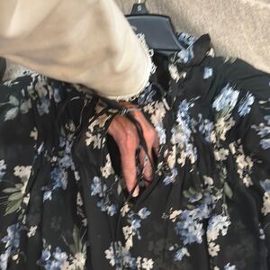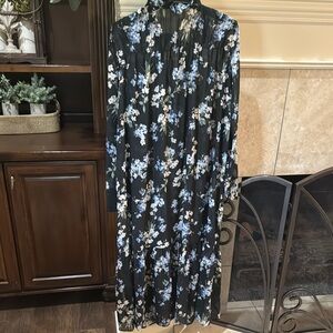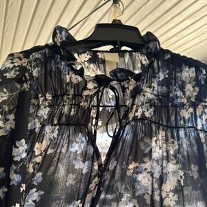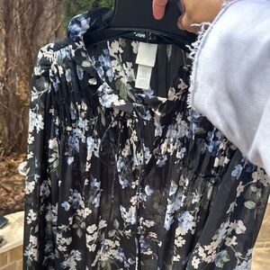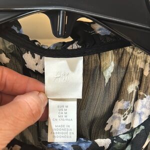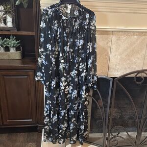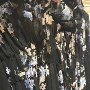 Women’s H&M Sheer Flowy Floral Black and Blue Maxi Dress Sz M