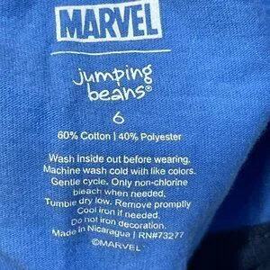 Set of 3 Marvel-themed shirts for boys in size 6. Includes one blue T-shirt, one white T-shirt, and one button-front shirt. Perfect for young superhero fans.