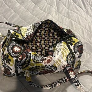 Stylish floral quilted women's duffel bag with a vibrant design. Side pocket. Great for an overnight bag or gym bag!