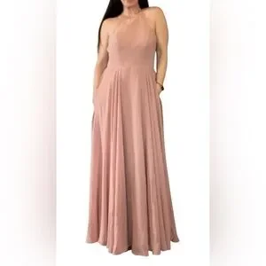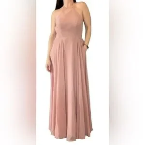 Elegant preppy classy halter formalwear wedding bridesmaid rose pink chiffon special occasion bridal