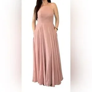 Elegant Pink Halter Bridesmaid | Prom Maxi Dress with Open Back