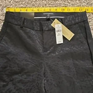 Experience the elegance of Banana Republic with these black tailored trousers. Crafted with a sleek, straight-leg design, they offer a sophisticated look suitable for any formal occasion. The textured fabric adds a touch of refinement, making them a versatile addition to your wardrobe.