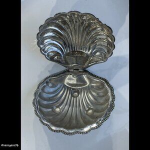 🆕VTG/ANTIQUE▪️3 Piece English Silver Plated Clam Shell Butter Caviar Jam Dishes