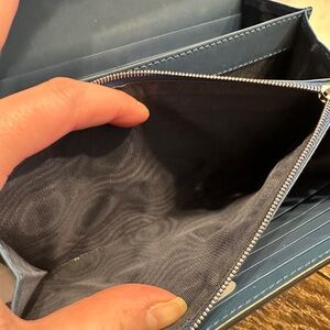 This iconic blue floral print in the Dionysus design is perfect for spring. While considered a wallet on chain, it does fit iPhone 16 ProMax with no case and is perfect for all the must haves! 16 card slots, 2 slip pockets, 1 zippered pocket and 3 open areas, this girl packs a punch! She sports a long silver chain perfect for carrying crossbody. Dress up jeans and a tee shirt or use with a formal dress -- this piece does it all. Condition of bag is very good to excellent. Box has some marks and small tear in a corner.