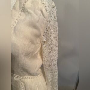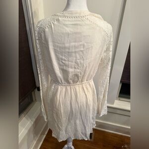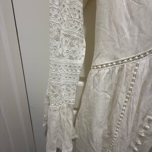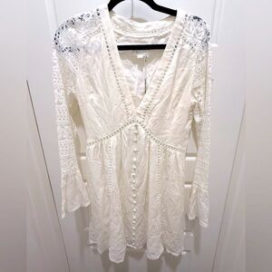 NWT. Lost & Wander Boho Long Lace Sleeve White Mini Dress. Size Medium
