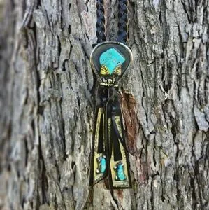 Elevate your collection with this stunning vintage bolo tie, featuring a sterling silver slide with an authentic turquoise stone, set on a beautifully woven leather cord.
