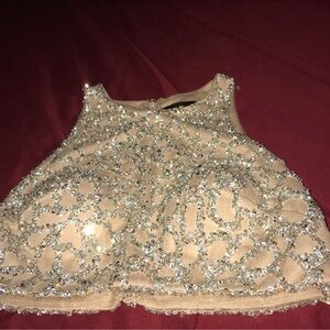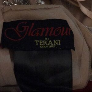 Stunning gown featuring a beaded bodice and a floral patterned skirt. Perfect for special occasions. Beautiful 2 piece Terani couture.
