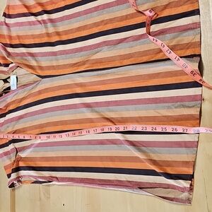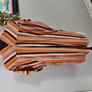 3 for $20 🍂 Faux Suede Striped V-Neck Tunic Top M Soft Brown Orange Fall Boho