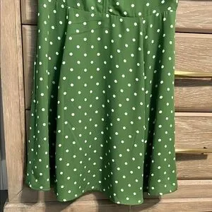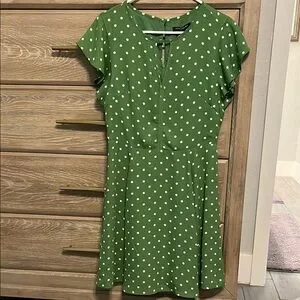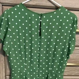 Chic and stylish green polka dot dress perfect for any occasion. Enjoy a flattering fit with a playful design with flutter sleeves. Never worn!