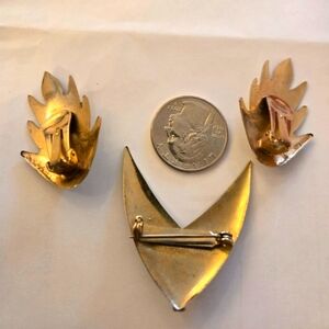 Elegant brooch and clip-on earring set. Features sparkling rhinestones.