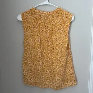 Brighten your wardrobe with this charming floral yellow sleeveless top. Perfect for casual outings or a day at the office.