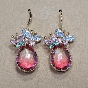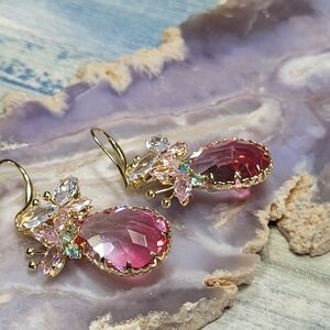 Pre-Own Elegant Butterfly Pink and Gold Teardrop Earrings.