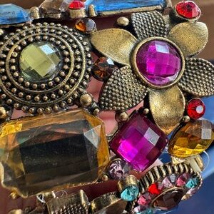 This captivating bracelet features a stunning blend of blue and red stones set in an intricate openwork design. The vibrant colors and detailed craftsmanship make it a standout piece in any jewelry collection. Perfect for adding a touch of elegance and color to your ensemble.