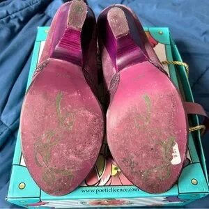 Step out in style with these elegant purple women's shoes. Perfect for any occasion, these shoes offer both comfort and fashion. Slight visible wear noted in pictures with a 3.5 heel.