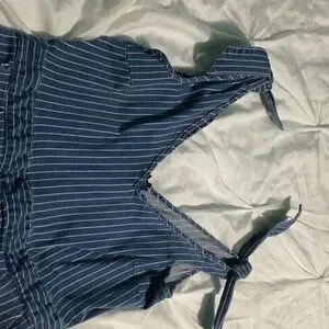 Trendy blue denim overalls with adjustable straps. Perfect for casual wear.
