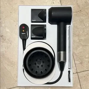 Experience fast drying with the Dyson Supersonic Hair Dryer. Sleek black design with advanced technology.