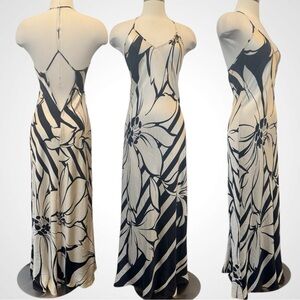 2001 Victoria’s Secret Silk Bold Floral Cream Black Halter Maxi Gown Slip Dress
