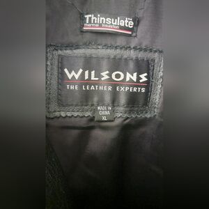 Wilsons Jacket Black Leather Collared Zip Button Pockets Belt Insulated Size XL