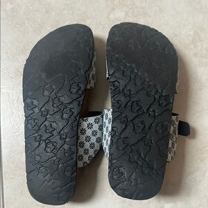 Stylish and comfortable, these sandals feature a classic black and white design. Perfect for everyday wear. Very comfortable and supportive. Used condition but a lot of life left. Size 7 but I’m usually a 7.5 and they fit perfect