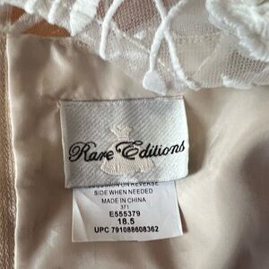 This elegant cream dress features delicate floral embroidery, perfect for special occasions. In good condition. It might have a few signs of wear, but all imperfections are shown. This comes from a pet and smoke free home. Size 18.5, measurements in pictures. Peach, cream color with white flowers.