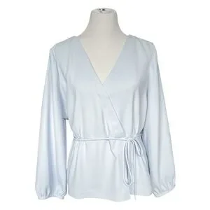 J. Crew Drapey crepe faux-wrap top Women’s 18 Light Blue