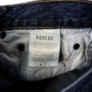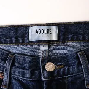Agolde Clara Jeans Noise 28 Baggy Mid-Rise Flared Wide Leg Organic Jeans Blue