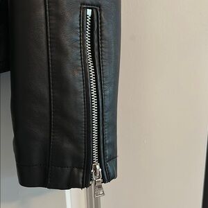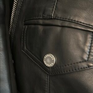 Elevate your style with this sleek black leather jacket from Express. Perfect for any occasion, this jacket combines classic design with modern flair. The rich black color adds a touch of sophistication to your wardrobe.