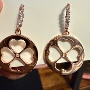 Elegant Kate Spade earrings featuring a rose gold clover design. Perfect for adding a touch of sophistication to any outfit.
