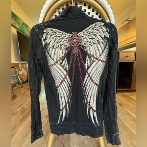 Vintage Y2K Affliction + Sinful Black Women's Graphic Zip Up Jacket Size Small
