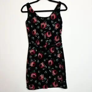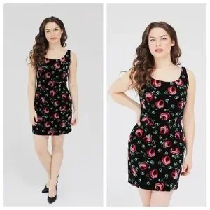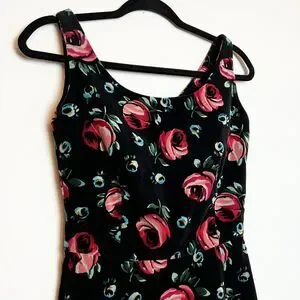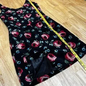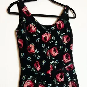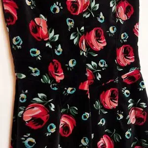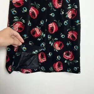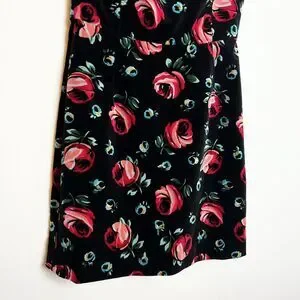 Esprit Vintage Black Velvet Floral Dress Pink Blue Roses Sz 5/6