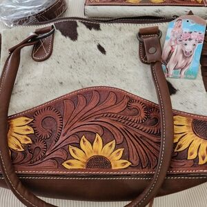 Haute Southern Hyde Concealed Carry Bag Stylish cowhide purse and wallet featuring a beautiful sunflower design and pocket for concealed weapon Shoulder strap included Perfect for adding a touch of elegance to any outfit. NWT AND DUST BAG