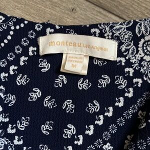 This stylish and comfortable blue and white patterned jumpsuit perfect for any occasion. It’s in EUC and was worn once, looks new. Features a flattering fit and eye-catching design. I’m 5’2 and it is high waisted and fits nearly perfect on the bottom. If you are taller it will look like a skimmer or ankle fit. It looks great with heels or sandals. It has an elastic waistband so it pulls you in and there is a belt for a finished look. The print is interesting and trendy. It’s blue so in the close up pictures is what it looks like. When I took a step back to show the entire garment, it looks black and it is NOT black. It is dark blue, navish. Feel free to ask questions about make offers. Or bundle two items from my closet for a great private offer. Don’t like my offer? Send me a counter offer. No offer offends me!! And every purchase comes with a free mystery 📦🎉👠🎉. Sound too good to be true? Check out my ratings!!