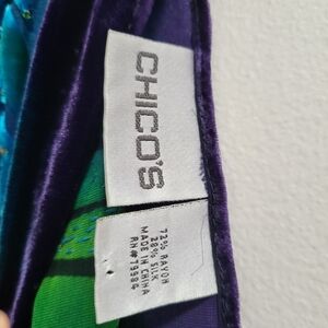 Chico's Velvet Burnout Silk Blend Sequin Tropical Leaves Scarf With Fringe