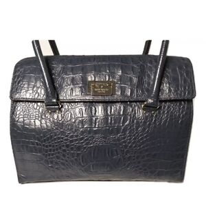 Kate Spade Orchard Valley Sinclair Croc Leather Shoulder Bag DARK BLUE Retail $498
