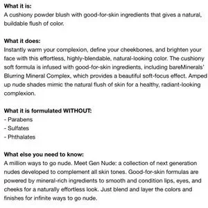 Enhance your natural beauty with the bareMinerals Gen Nude Blush. This pink blush adds a soft, radiant glow to your cheeks. Perfect for everyday wear.