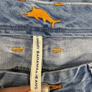 Tommy Bahama Men's Denim Jeans. Blue in color. Light denim wash. Tagged size 36x32. These men's Tommy Bahama jeans feature a five pocket design, a straight leg and a high rise fit. The jeans are a very soft denim and give a relaxed fit to the wearer. In preowned condition with minimal signs of wear.
