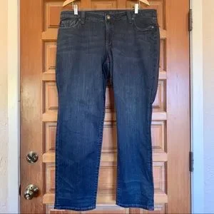 I love this brand—such good quality stretch denim. Dark wash, overdyed. Very light fading. Straight leg, midrise. New in original packaging, never opened. Inseam is about 31”. Size 16W.