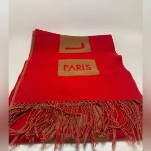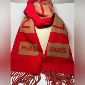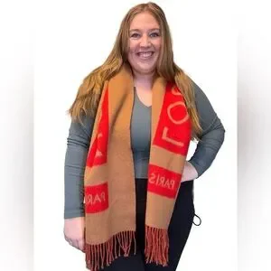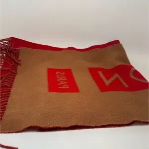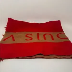 SOLD Louis Vuitton Red & Camel Double Sided 100% Cashmere Winter Scarf Luxury