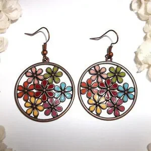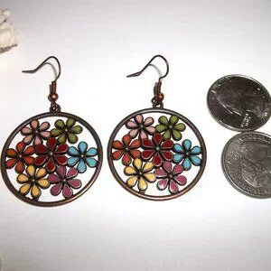 Copper Multicolored Flower Earrings Statement Jewelry Big Large Earring C875